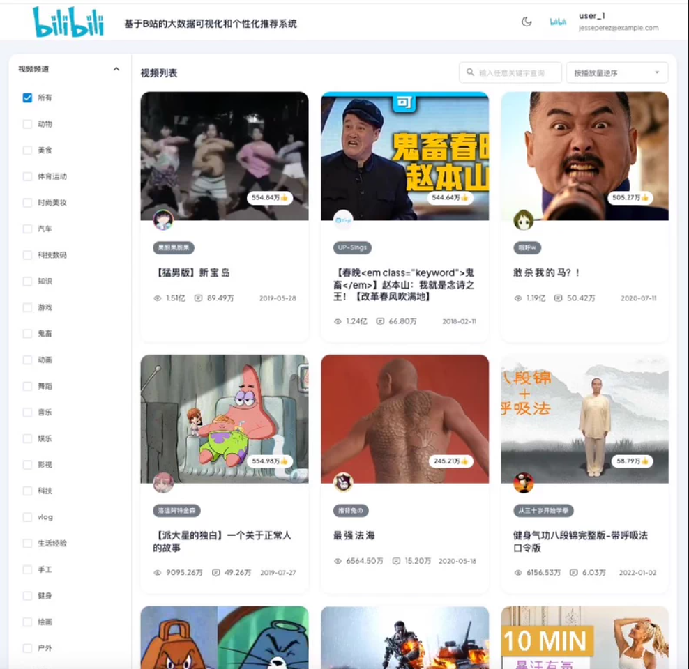 源码名称:基于spark的B站数据可视化分析和个性化推荐系统